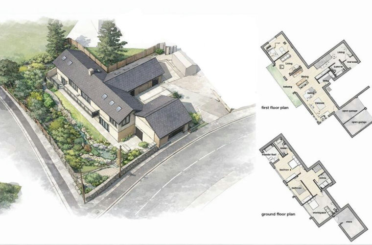 The approved scheme provides for a large architect-designed property of approximately 240m² (circa 2,580 sq ft) arranged over split levels, designed to take advantage of the natural topography of the site. The design incorporates spacious living accommodation, multiple bedrooms and generous glazing to maximise views and natural light.