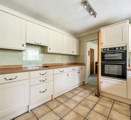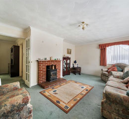 Inside, the entrance hall leads to a light and spacious dual-aspect sitting room, complete with a wood-burning stove. Double doors open through to the dining room. The adjoining kitchen is fitted with a range of wall and base units and enjoys a pleasant outlook over the gardens. From the dining room, sliding doors open into the conservatory, a bright and relaxing space that makes the most of the garden views.