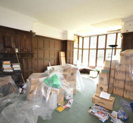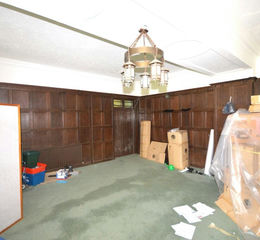 Reception Room with fireplace, timber panelled walls, bay window with seating to front.