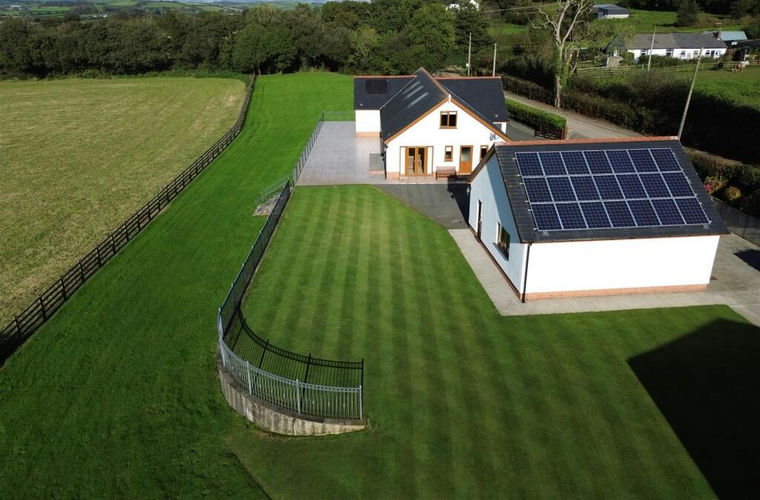 Detached Garage - 7.25m x 7.3m (23'9" x 23'11" ) - Two remote controlled sensor roller shutter doors to fore, uPVC double glazed window to side, uPVC double glazed door to side. Private water supply with filters and extraction unit. Solar panel collection point 3.9kw with separate electric circuit board. Double garage has the benefit of attic trusses over which has the potential for further usage subject to the necessary planning consent.