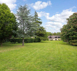 The rear garden is a feature of the house and comprises of large established lawns set around a terraced patio area with mature planted borders and tree lined boundaries. To the end of the garden there is a paddock area for small pony, chickens or growing of home produce.