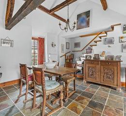 The property offers beautifully presented and versatile accommodation while retaining the character and scale expected of a traditional barn conversion. A welcoming entrance hall leads to a striking vaulted reception room that immediately showcases the building’s original charm. At the heart of the home is a superb living room with fireplace, creating a warm and inviting space to relax, while the open-plan kitchen and dining area provides an ideal setting for modern family living and entertaining. This space flows effortlessly into a bright conservatory overlooking the garden, filling the home with natural light. A generous study on the ground floor offers excellent flexibility, easily serving as a guest bedroom or additional reception room.