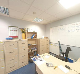 The property comprises of a mid-terraced industrial unit of steel portal framed and brick/block construction with part steel profile clad elevations. Internally, there are offices, a meeting room, kitchenette and storage space.