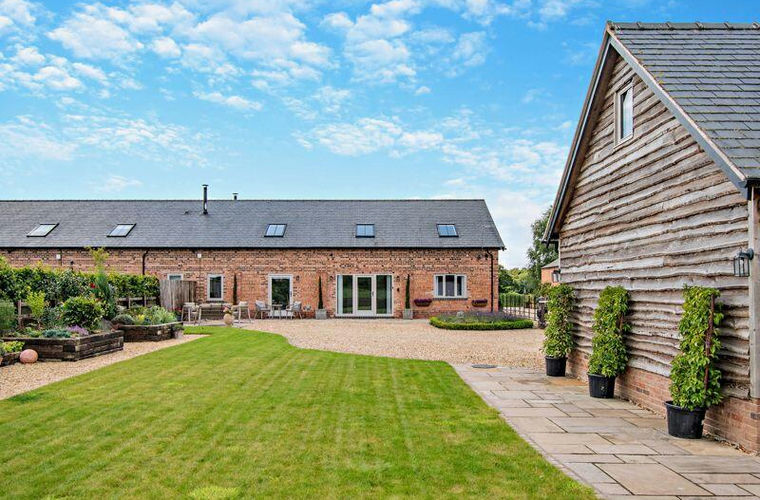 The attractive and secluded landscaped gardens back onto fields owned by the Cholmondeley Estate, they are principally laid to lawn include well stocked raised borders retained with reclaimed sleepers, there are two large sheltered Indian stone patio areas ideal for alfresco entertaining.