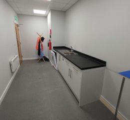 The offices and ancillary space are largely fitted with suspended ceilings, inset LED lighting, air conditioning with painted/plastered walls, powder coated aluminium double glazed windows and non-slip vinyl floor coverings. There are further electric heaters installed to the internal corridor area. The first floor kitchen provides base fitted cupboards and stainless steel drainer/sink unit.