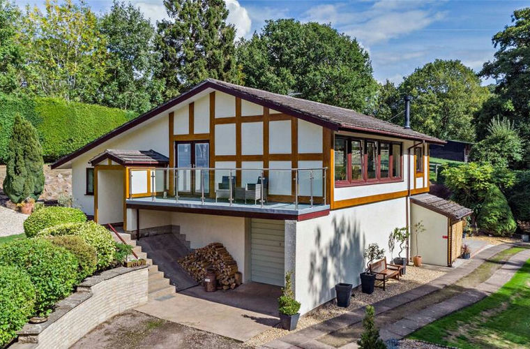 Striking Mid-Century house with stables and land in a secluded village location, 2.85 Acres.