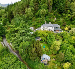 Adjacent to the house, the upper garden level provides a seamless transition between indoor and outdoor living, complete with a vegetable garden and dedicated spaces for al fresco dining and relaxation. Beyond this, the uppermost section of the grounds blends into semi-managed woodland, rich with a variety of tree species and exotic rhododendron and winding footpaths, offering a tranquil retreat with breath taking views.