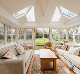 The garden room is where the house leans toward the seasons. South-facing and bright, with doors opening onto the garden, it becomes the natural place to sit on long spring afternoons or watch the garden settle at the end of the day.