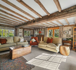 The accommodation is approached via an entrance hall with staircase off, exposed tiled flooring and chamfered ceiling timbers, immediately setting the tone for the wealth of character features found throughout. The triple aspect sitting room is particularly impressive, enjoying leaded light casement windows to the front and rear elevations and oak framed double doors opening to the side. Set beneath an exposed timbered ceiling, the room is centred around a classically styled red brick fireplace with inset wood burning stove, complemented by useful fitted storage recesses and a door complete with Suffolk latch opening back to the entrance hall. The overall aspect is unspoilt, with attractive views across the enveloping gardens and grounds.