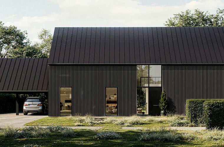The proposed design combines contemporary internal living with a traditional barn-inspired exterior, creating a distinctive countryside home with generous proportions and strong architectural character.