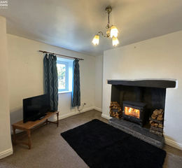 A cosy yet spacious ground floor reception room with character fireplace with log burner in the centre. Stairs lead up to the first floor accommodation and doors into: