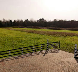 The block paved driveway extends from the front of the property through to the double garages and ranch style gates into the paddock at the rear of the property. This double-width driveway has custom made lockable gates, and offers ample off-road parking for multiple vehicles, a motorhome or caravan.