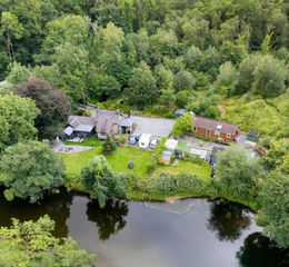 The 2 dwellings and the many outbuildings (12 in total) sit on approximately2.5 acres with about 3/4 of an acre of level ground on the south bank of the beautiful river Cothi. The river itself sits about 10 feet down the fenced, steep yet sturdy riverbank, with a set of gated steps down to the waters edge at the western end of the riverbank.