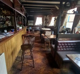 LOUNGE BAR being a period room of some character with heavily beamed ceiling, carpeted floor, fixed button vinyl upholstered wall seating, loose easy chairs and sofas, together with low table stools, currently arranged for 35 customers. Fireplace with antique brick surround and tiled hearth with cast iron solid fuel burner installed. Counter from central bar server having bevelled tongue and groove panelled frontage and canopy over. The PUBLIC BAR is a similarly appointed room with heavily beamed ceiling, fixed bench wall seating, loose sofas with easy chairs, currently arranged for 30 customers with standing space for more. The room is carpeted, has wide screen TV, dart throw and pool table. Counter from central bar servery having panelled frontage.