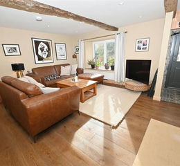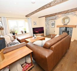Sitting Room - 5.03m x 4.49m (16'6" x 14'8") - A lovely cosy room with feature fireplace & woodstove, exposed stonework, ceiling beams & Oak flooring. Down-lighting ,recessed double-glazed window & door to front, & door to: