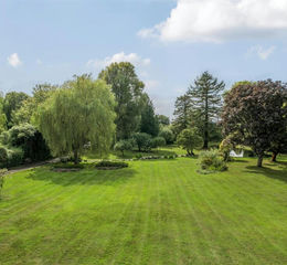 The heart of the home is the generous and light kitchen/breakfast room enjoying a dual aspect with magnificent views overlooking the garden, serviced by a utility room. The formal dining room has a sweeping outlook of the garden towards the beautifully manicured lawn, mature trees and the pond. The drawing room is affectionately known as the ballroom by the current owners, which has dual aspect views of the garden, laid with parquet flooring and has a feature fireplace as a focal point to the room. The sitting room enjoys a cosy feel, with a charming brick chimney breast with a wood burner as a focal point with double doors leading the garage. The study is makes an ideal home office with built in storage.