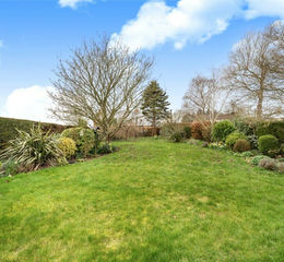 The property enjoys a generous enclosed rear garden, mainly laid to lawn with mature planting and established borders, offering a private and peaceful outdoor setting. A patio terrace provides an ideal space for outdoor dining and entertaining.