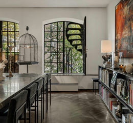 The building itself has a rich past. Originally a Victorian workshop that manufactured wheels for carriages, the property still carries a distinctly Dickensian character, from its muscular brick fabric to its sense of being quietly tucked away from modern London. Clerkenwell is widely cited as part of the landscape that is said to have inspired Charles Dickens' Oliver Twist, and that history still lingers in the area's lanes and former workshops. Today, that heritage has been reinterpreted into a deeply atmospheric private space that balances old London soul with contemporary design.