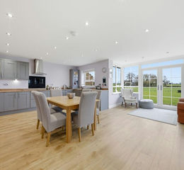 Designed with family living in mind, the accommodation is bright, practical and well proportioned throughout. The ground floor centres around a substantial dining kitchen measuring over 20ft, providing a fantastic social hub for everyday living and entertaining. A welcoming entrance hall leads through to a spacious lounge with bay window, ideal for relaxing while enjoying views over the surrounding land. A separate study or snug offers the perfect space for home working, complemented by a utility room and ground-floor shower room, adding further practicality to the layout.
