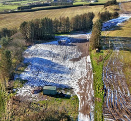 The development site comprises an area of south-east facing ground, currently laid to prepared earthen ground, with the area of the site (covered under the two planning applications) extending to approximately 0.59 Hectares (1.45 acres) or thereby in total. The ground is bordered by agricultural land to the south-east round to the north-west, with much of the boundary comprising a tree shelter belt separating the site boundary from the agricultural fields. The site is bordered to the north-east by the garden grounds of the third-party owned South Orrock Bungalow.