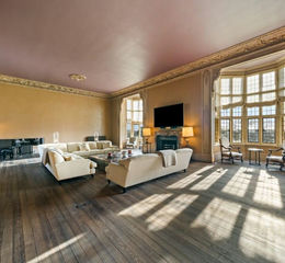 On entering, a grand reception hall sets the tone for the extraordinary proportions throughout, leading to a magnificent 40-foot drawing room with soaring ceilings, an ornate original fireplace, and period features that speak to the manor's distinguished heritage. Bay windows frame sweeping views over the formal gardens and rolling countryside beyond.