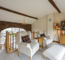 Mezzanine Seating Area - 4.2 x 3.5 (13'9" x 11'5" ) - With stairs leading from lounge, space for seating, feature beams and exposed brick, double glazed arch window to front with stunning rural views and a central heating radiator.