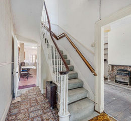 Stairs to the first floor landing with a useful storage cupboard beneath, radiator.