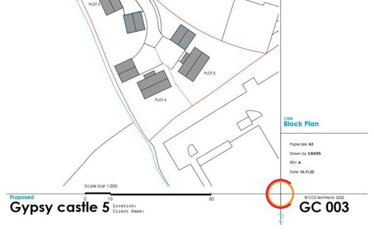 The planning consent is for the provision of three detached four-bedroom houses each with garages and a pair of three-bedroom semi-detached houses with parking.
