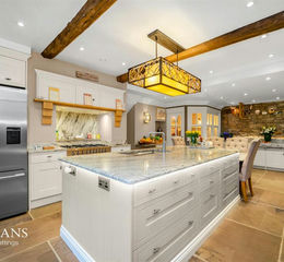The accommodation is both generous and versatile, offering five impressive double bedrooms, each benefitting from bespoke walk-in wardrobes — an enviable feature rarely found in homes of this style. Four beautifully appointed bathrooms serve the property, finished with premium fittings and elegant design to create spa-like spaces. Three spacious living areas provide flexibility for modern family life and entertaining, with an effortless flow between rooms and an abundance of natural light framing the surrounding countryside views. At the heart of the home lies a stunning kitchen and dining space, thoughtfully designed with high-spec cabinetry, quality appliances and ample room for hosting and everyday living.