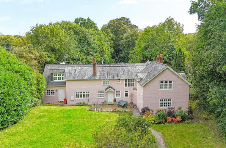A beautiful detached country house, set in approximately three acres of stunning, bluebell-lined woodland with open lawns, tennis court, and a modern timber garage complex.