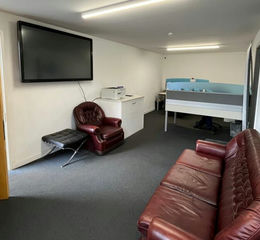 The two-storey office section is air-conditioned with a suspended ceiling, CAT II fluorescent lighting and double glazing to the front elevation.
