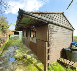 The land extends to approximately 2.22 acres and benefits from mains water supply, making it ideal for a variety of rural or equestrian uses. The property includes a useful range of outbuildings, comprising two timber stables with a concrete standing to the front, a hay store with a small stable to the rear, and a timber tack room, providing practical facilities for those with equestrian or smallholding interests.