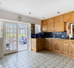 The farmhouse itself is full of warmth and traditional charm, with well-proportioned accommodation arranged over two floors and extending to around 2,220 sq ft. The ground floor provides a welcoming layout centred around a spacious triple aspect sitting room with an attractive outlook over the gardens, complemented by a cosy family tv room and a fitted kitchen that connects to a delightful conservatory, ideal for enjoying the exceptional views of the surrounding countryside and towards the North Downs. A study/workshop provides useful additional space for home working or hobbies. The property benefits from a fast fibre broadband connection and is wired for ethernet.