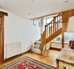 Traditional beamed ceiling, timber flooring, central heating radiator and double glazed window.