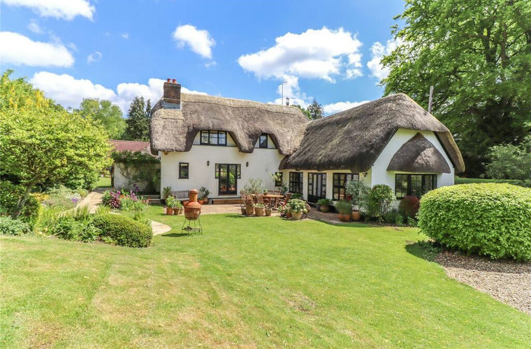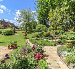 A detached Grade II Listed period cottage offering extremely spacious and well-presented accommodation featuring an impressive triple aspect drawing room with high vaulted ceiling, three further reception rooms and farmhouse kitchen with Aga. To the first floor, four double bedrooms, bathroom and gallery overlooking the drawing room. There is also a good size double garage and adjoining luxury garden room. The property has a stunning secluded mature landscaped garden with central water feature and the additional benefit of a good size adjoining paddock/meadow rising to the rear boundary where there are stables, and a kitchen garden. The property has the considerable benefits from a ground mounted 7Kw solar system with 22 south facing panels, plus a 5Kw Inverter and 3 batteries giving 19.9Kwh of power storage meaning that the system is a net exporter over the period of a year.
