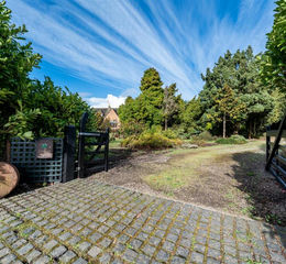 Front Of The Property - Accessed via double field gates leading from the front of the property, timeworn cobbles, lined with trees which opens up to a spacious gravelled driveway with access to the double garage, well established mature shrub borders surround the driveway with further access to the rear lawn and land to rear and access to the property via entrance porch and conservatory.