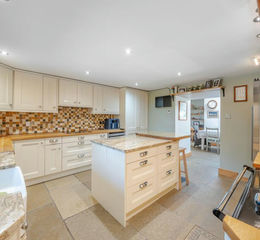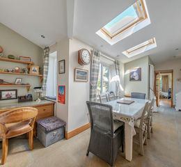 The accommodation opens via an entrance porch into a central hallway, leading through to a generous breakfast kitchen fitted with a range of shaker-style units and central island. To the rear, a particularly impressive dining room extension provides an excellent everyday living and entertaining space with skylights and direct access to the gardens, whilst the garden room/second lounge with wood burning stove offers a further versatile reception area overlooking the outside space. There is also a well proportioned bay-fronted lounge with a multi-fuel stove. To the first floor there are three bedrooms all with fitted wardrobes, including a spacious principal bedroom with en-suite bathroom facilities, together with a modern house shower room. Externally, the property benefits from driveway parking to the front and a fabulous rear garden, being a real feature of the house, predominantly laid to lawn with planted borders, seating areas and a lovely open aspect across the village towards the surrounding countryside.