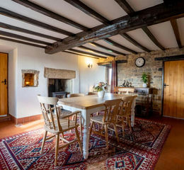Dining Room - 4.86m x 3.66m (15'11" x 12'0") - A fabulous dining room with a front facing UPVC double glazed window with a stone sill and a rear facing UPVC double glazed panel with a stone sill. Also having exposed timber beams, an exposed stone wall, wall mounted light points, a recessed arched stone shelf, a central heating radiator, a telephone point and terracotta tiled flooring. The focal point of the room is the log burner, which is set beneath a gritstone mantel with a stone surround and hearth. Doors open to the storage cupboard, lounge, snug and breakfast kitchen.