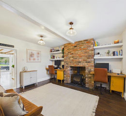 Office/Sitting Room - With exposed brick chimney breask housing a log burning stove upon a tiled hearth. Window to the front elevation with plantation shutters.