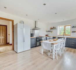 A remarkable property of circa 10 Acres with spectacular views, in a notable setting. With a former quarry transformed into a large level sheltered paddock and a successful luxury small glamping site. Recently built with the beautiful stone from the quarry, a three-storey family house that has commanding views as far as the Mendips.