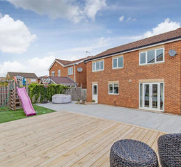 Fabulous sun blessed SOUTH FACING rear landscaped garden with substantial fenced boundaries. Impressive decking area with low level sleeper edging and steps to the upper Italian Porcelain Patio. With a nice area of artificial lawns and play area with a further raised decking with timer set lighting also to the steps, additional sleeper edge plum slate bed- A perfect setting for external family and social fresco dining and entertainment!! External side store/ shed with power and security alarm.