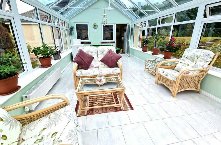 The conservatory extends the living space further and takes full advantage of the outlook across the grounds and surrounding greenery.