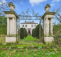 Behind its striking symmetrical façade, the property offers spacious, light-filled interiors featuring high ceilings, refined finishes, and versatile living spaces ideal for family life or grand entertaining. Highlights include a welcoming grand foyer, elegant reception rooms, and a charming farmhouse kitchen complete with a log burner, creating a warm and inviting atmosphere.