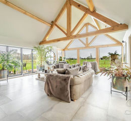 There are four impressive reception rooms, one of which is currently configured a a gym, adding to the homes lifestyle appeal. The true heart of the home is the stunning open plan kitchen, dining and living space - designed for both everyday living and entertaining in style. The main lounge is a real architectural highlight, featuring an entire wall of glass that frames breathtaking countryside views and floors the space with natural light. Two beautifully appointed dressing rooms further complement the bedroom accomodation, enhancing the sense of luxury and practicality.