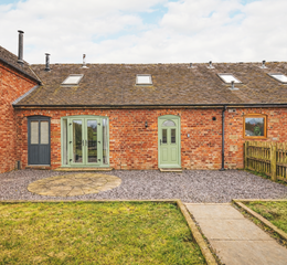 From the outside, the barn retains a character that reflects its origins, with a straightforward, honest appearance that sits comfortably within its surroundings. The approach is along a shared driveway, leading to parking at the front, while the enclosed garden provides a welcoming setting before you step inside.