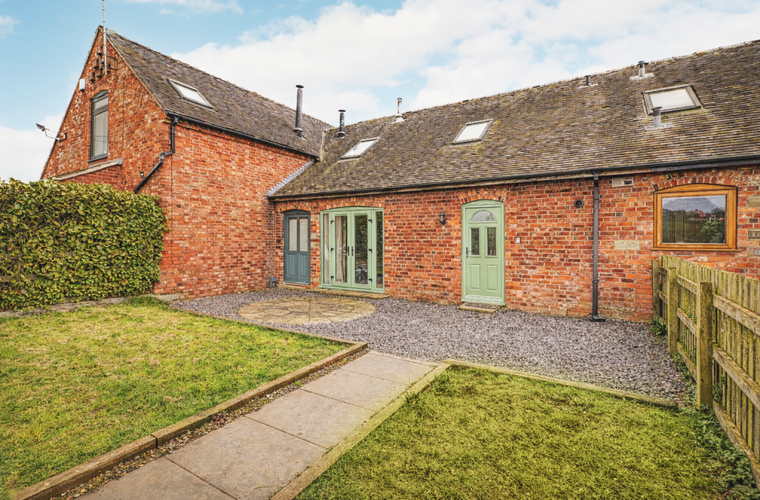 Birchbus Barn sits along Lea Road on the edge of Hixon, where the village gently gives way to open countryside. Its position is particularly appealing, set behind a traditional picket fence and looking out across far reaching views that shift with the seasons. There is a real sense of openness here, where wide skies and uninterrupted fields become part of the everyday outlook.