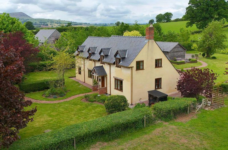 The property is set back behind a delightful and private front garden with brick pathway winding its way to the front door. It is largely laid to lawn with a number of mature trees and shrubs, with a seating area from which to enjoy the southerly aspect. A driveway runs to one side leading to a large gravelled parking area, which includes a detached oak-framed garage with attached double carport. The beautifully maintained gardens include a gravelled dining terrace, ornamental pond, mature planting, and sweeping lawns with uninterrupted views across rolling Monmouthshire countryside. From the garden a gate opens into the paddock which allows options for livestock or just leading the good life. There is a further entrance to the paddock via a five bar gate next to the boundary of the front garden.