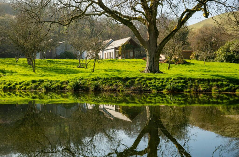 There is something special about the approach into Sterridge Valley. The lane narrows, the landscape folds in around you, and the sound of running water begins to replace everything else. Lower Rowes Farm sits quietly within this beautiful valley setting, surrounded by its own pasture, sheltered by wooded valley sides, and bordered by the river. It feels private, grounded and entirely at ease in its surroundings.