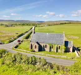This incredible red sandstone church building sits in prominent rural location at the junction of the Ross Road with the main A841 circular Arran route.