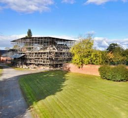Burghill Lodge offers an unprecedented opportunity to undertake the restoration of the grand oak frame Manor House, creating an extraordinary family home of approx. 6000 sq. ft, with proposed 6 double bedrooms (4 ensuites) and orientated to overlook part-walled private gardens. Currently the house is a shell, with its stunning oak timber frame stripped back, treated and supported by a scaffolding cover - ready for year round work to commence, with planning consent. [Planning Application No S122487/FH]
